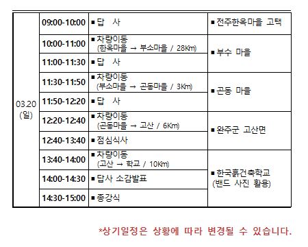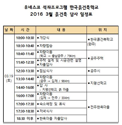 2016 3월 흙건축 답사 일정표